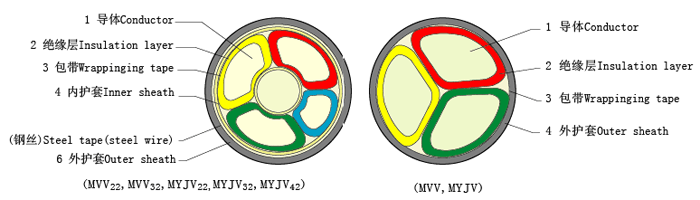 礦井中電能傳輸線路但不能承受機械外力作用 Energy transmission linebut not mechanical impact in mines |