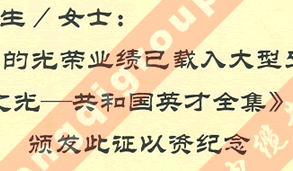 董事長陳有新載入大型史冊《東方之光-共和國英才全集》證書
