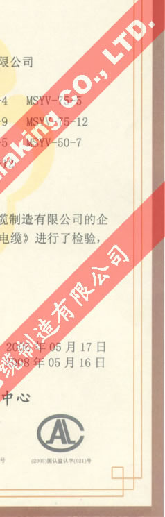 國家采煤機(jī)械質(zhì)量監(jiān)督檢驗(yàn)中心檢驗(yàn)合格證--煤礦用阻燃電纜(MSYV-75-7)