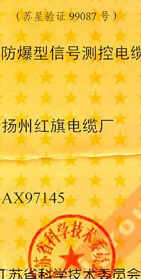江蘇省星火計劃項目驗收合格證(防爆型信號測控電纜)