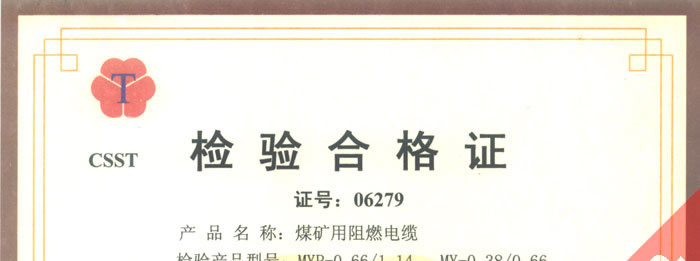 國(guó)家采煤機(jī)械質(zhì)量監(jiān)督檢驗(yàn)中心檢驗(yàn)合格證--煤礦用阻燃電纜(MYC-0.66/1.14,MY-0.38/0.66)