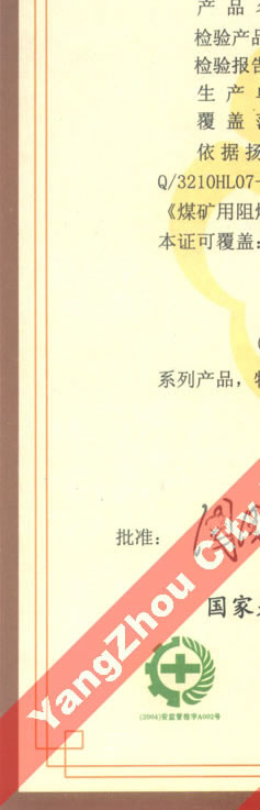 國(guó)家采煤機(jī)械質(zhì)量監(jiān)督檢驗(yàn)中心檢驗(yàn)合格證--煤礦用阻燃電纜(MHYVR,MHYVRP)