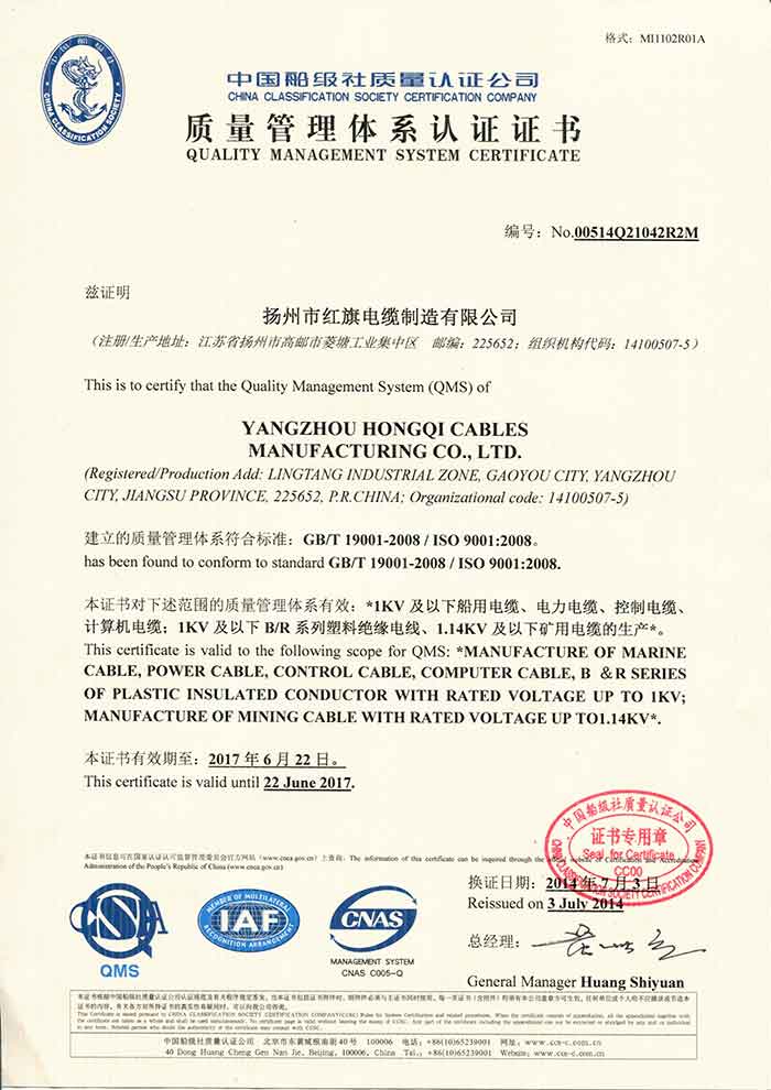 中國(guó)船級(jí)社工廠認(rèn)可證書(shū)(CHINA CLASSIFICATION SOCIETY CERTIFICATE OF WORKS APPROVAL)