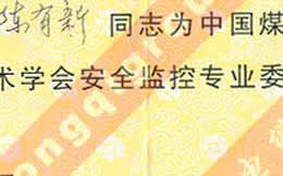 聘請董事長陳有新為中國煤碳工業(yè)勞動(dòng)保護(hù)科學(xué)技術(shù)學(xué)會(huì)安全監(jiān)控專業(yè)委員會(huì)委員證書