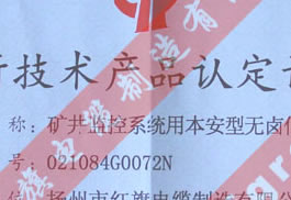 高新技術(shù)產(chǎn)品認定證書(礦井監(jiān)控系統(tǒng)用本安型無鹵低煙屏蔽信號電纜)