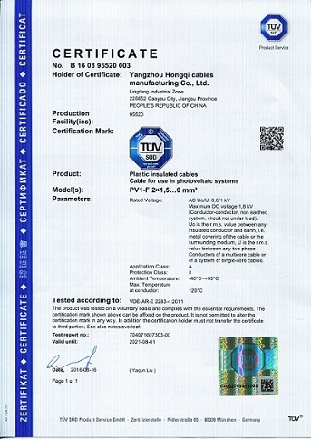 日前,在紅旗全體電纜人的共同努力下,紅旗電纜公司生產(chǎn)的太陽能光伏電線電纜成功通過了德國萊茵(簡稱TUV)認(rèn)證,本次認(rèn)證覆蓋了歐盟EN50618:2014和德國VDE-AR-E2283-4:2011兩個標(biāo)準(zhǔn)的光伏電線電纜,電線從1×1.5m㎡到1*35m㎡的全部規(guī)格、電纜從2×1.5m㎡到2*6m㎡的全部規(guī)格。