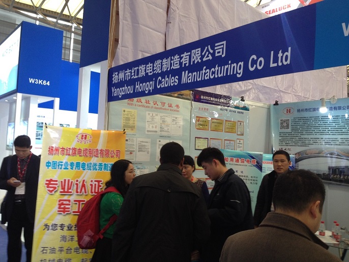 在揚(yáng)州市紅旗電纜公司展位上,該公司展示了多年來研發(fā)和生產(chǎn)的船用通信電纜、船用控制電纜、船用電力電纜、艦用通信電纜、艦用控制電纜、艦用電力電纜、海洋工程用電力電纜、海洋工程用通信與儀表電纜、石油平臺電纜、港口機(jī)械電纜、起重器具電纜等多系列“和字”牌船艦與海工電纜產(chǎn)品,吸引了眾多的新老客商(包括歐美及東南亞地區(qū)的)前來參觀、咨詢、洽談。廣大客戶通過近距離的查看電纜實(shí)物樣品和翻閱電纜選型手冊,與現(xiàn)場服務(wù)人員面對面的溝通交流,同時(shí)觀看企業(yè)宣傳海報(bào)和宣傳片,對揚(yáng)州紅旗電纜公司的企業(yè)規(guī)模、生產(chǎn)能力、生產(chǎn)裝備、檢測手段、質(zhì)保能力、研發(fā)能力、產(chǎn)品種類等有了更多的了解,新客戶紛紛表示今后進(jìn)一步關(guān)注揚(yáng)州紅旗,逐步建立首次合作關(guān)系;老客戶也紛紛表示將進(jìn)一步加大與該公司緊密合作,希望建立長期戰(zhàn)略合作伙伴關(guān)系,蒞臨展會(huì)現(xiàn)場的該公司相關(guān)領(lǐng)導(dǎo)衷心地希望廣大客戶繼續(xù)關(guān)注和支持揚(yáng)州紅旗公司的發(fā)展,加強(qiáng)合作,實(shí)現(xiàn)雙贏!